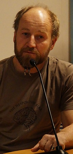 See filename. | Eigenes Werk | User:W. | Datei:Vienna 2014-01-20 Roland Düringer in talk on his latest book, 'Leb' wohl, Schlaraffenland' b.jpg |