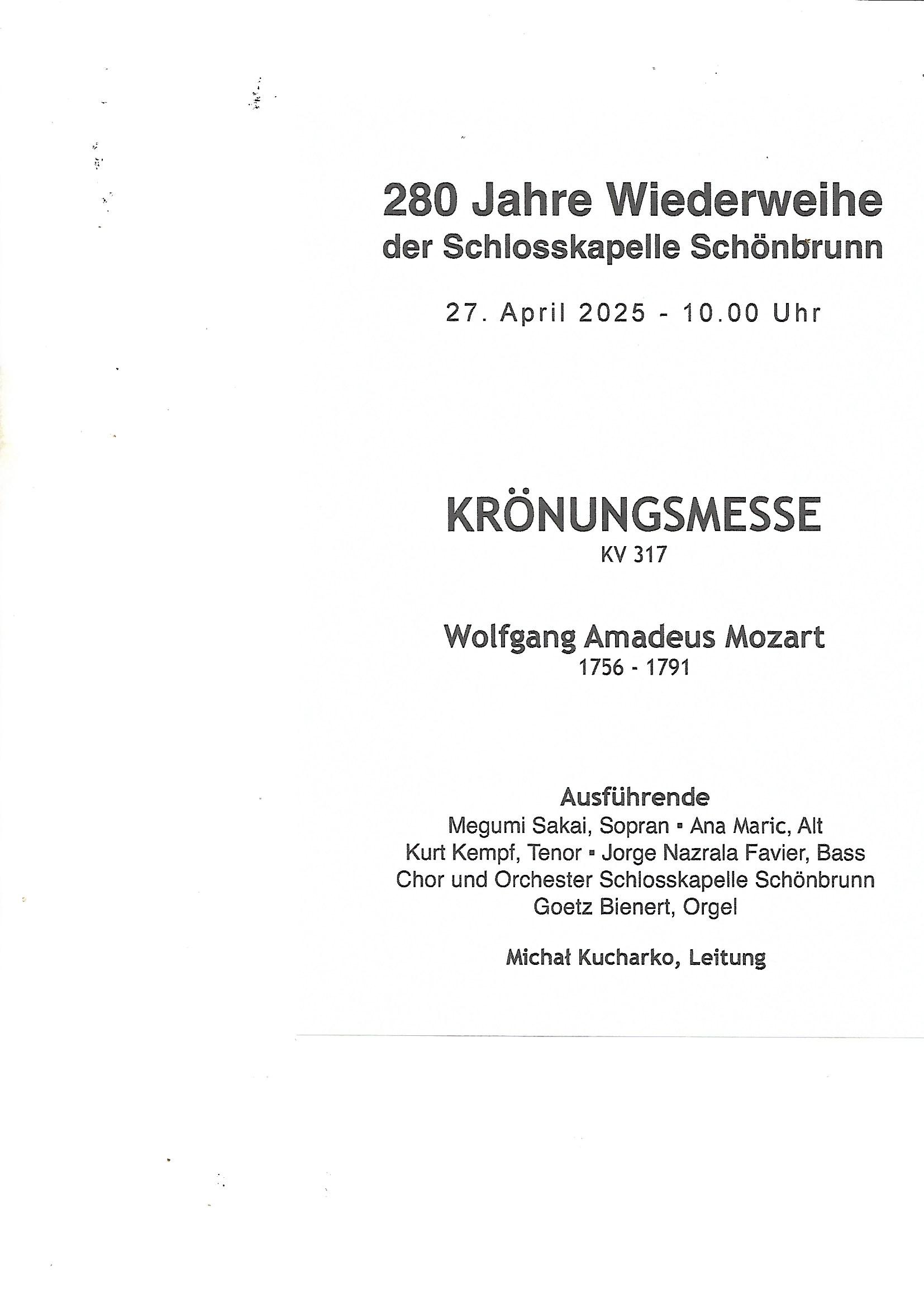 Das kaiserliche Schloss Schönbrunn besitzt eine Kapelle, die das UNESCO- Weltkulturerbe des Schlosses würdig ergänzt. Anstelle eines kleinen Jagdschlosses, welches in Folge der Türkenbelagerung 1683 zuerstört worden war, ließ Kaiser Leopold I. für seinen Thronfolger Josef I. einen repräsentativen Neubau planen. Das Schloss wie auch seine Kapelle zur hl. Maria Magdalena wurden nach Plänen von Johannn Bernhard Fischer von Erlach ab 1696 bis 1701 errichtet.