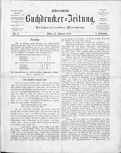 Die Österreichische Buchdrucker-Zeitung war eine österreichische Wochenzeitung, die von 1873 bis 1885 in Wien erschien. Ab 1886 hieß sie Österreichisch-ungarische Buchdrucker-Zeitung und ab 1919 Deutsch-österreichische Buchdrucker-Zeitung. Nebentitel der Zeitung waren bis 1903 Wochenblatt für sämtliche graphischen Zweige, ab 1904 Organ des Graphischen Club in Wien. Wochenblatt für sämtliche graphische Zweige und ab 1919 Wochenblatt für sämtliche graphische Zweige. Publikationsorgan des Gremiums der Buchdrucker und Schriftgießer in Wien, des Gremiums der Lithographen, Stein-, Licht-, Kupfer- und Zinkdrucker sowie Chemiegraphen und verwandter Gewerbe in Wien. Bis 1919 erschien sie im Verlag von Friedrich Jasper.[1]