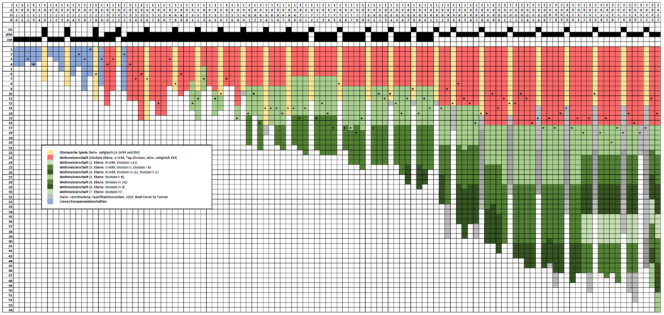 | Platzierungen der österreichischen Eishockeynationalmannschaft bei Olympischen Spielen, Europa- und Weltmeisterschaften | Eigenes Werk | NiobNb41 | Datei:Eishockey-Nationalmannschaft-Tabelle-2023-Oesterreich.png | |