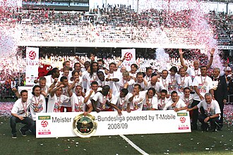 In der Saison 2008/09 wurde der Saison-Torrekord von 1980/81 (509 Tore) mit 588 Treffer um 79 Toren übertroffen. Im Schnitt ergab das 3,27Tore pro Spiel.[9] Rapid Wien erzielte mit 89 Toren die meisten und der LASK mit 35 die wenigsten Tore. Die wenigsten Tore erhielt die SV Ried (38), während SCR Altach mit 90 Toren die meisten Gegentreffer zu verzeichnen hatte. Das torreichste Spiel lautete SV Mattersburg gegen Sturm Graz in der 13.Runde, welches die Grazer mit 6:5 für sich entschieden. Den höchsten Sieg feierte Rapid Wien in der 20.Runde gegen den SCR Altach (8:1). Das höchste Unentschieden lautete 3:3 und wurde in der 13.Runde bei der Partie Austria Kärnten gegen Rapid Wien und in der 34.Runde beim Spiel Kapfenberger SV gegen Sturm Graz erreicht. Die torreichste Runde war die 13., in der insgesamt 31 Tore (Schnitt = 6,2) fielen. Die wenigsten Tore gab es eine Runde davor, in der 12.Runde, mit acht Treffern (Schnitt = 1,6).[8]