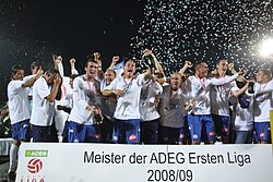 Die Erste Liga, welche in der Saison 2008/09 zum 34.Mal ausgetragen wurde und die zweithöchste Ebene im österreichischen Fußball darstellt, begann am 11.Juli 2008 mit fünf Partien und endete am 29.Mai 2009. Der Sponsor-Name der Ersten Liga änderte sich in dieser Saison von Red Zac-Erste Liga in ADEG Erste Liga, da man ADEG im Frühjahr 2008 als neuen Hauptsponsor engagierte.[13] Neben Bundesliga-Absteiger Wacker Innsbruck komplettierten die drei Regionalliga-Aufsteiger die zwölf Mannschaften der Ersten Liga. Es sind dies aus der Regionalliga West der SV Grödig aus Salzburg, aus der Regionalliga Mitte der 1. FC Vöcklabruck aus Oberösterreich und aus der Regionalliga Ost der SKN St. Pölten aus Niederösterreich. Neben diesen vier Neulingen, wurden nach der Saison 2007/08 auch der SC Schwanenstadt in FC Magna Wiener Neustadt und der ASK Schwadorf in FC Admira Wacker Mödling umbenannt.