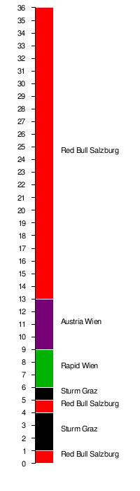 Die längste Siegesserie mit sieben Siegen in Folge behaupteten Red Bull Salzburg (10. bis 16.Runde) sowie Sturm Graz (12. bis 18.Runde) für sich. Sturm Graz erreichte mit drei Remis hintereinander überdies die längste Unentschiedenserie zwischen der 32. und 34.Runde. Der LASK Linz musste hingegen zwischen der 12. und 20.Runde neun Niederlagen in Serie einstecken.