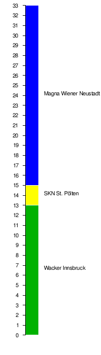 Als Titelfavoriten gingen die stark gesponserten Vereine SC Wiener Neustadt (von Magna) und FC Admira Wacker Mödling (von Trenkwalder) an den Start,[14][15] wobei beide und vor allem die Admira anfangs Schwierigkeiten hatten. Diese Probleme nutzen die Vereine Wacker Innsbruck und SKN St.Pölten aus, die sich beide bis zum Beginn des zweiten Drittels an der Tabellenspitze festsetzten. Da beide Vereine in weiterer Folge nicht mehr so gute Ergebnisse erzielten, übernahm Wiener Neustadt, ständig verfolgt von der Admira, bis zum Saisonende die Tabellenführung. Wacker Innsbruck konnte die am Saisonende schwache Admira noch überholen. Der SKN St.Pölten platzierte sich im vorderen Mittelfeld.