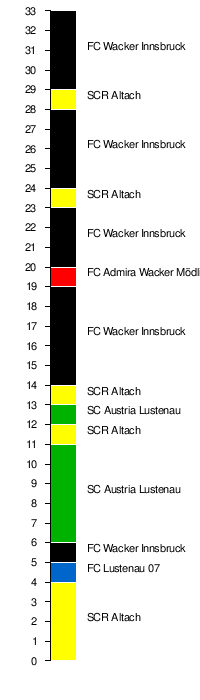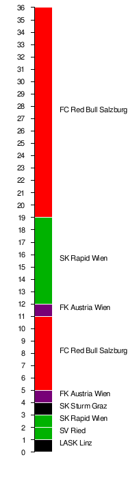 ↑ Da die beiden zweiten Mannschaften vom FC Red Bull Salzburg und dem FK Austria Wien wegen der Klassreform als Fixabsteiger geführt werden, werden sie in der Wertung nicht berücksichtigt. Folglich ist das Schlusslicht der Ersten Liga mit dem dritten Abstiegsplatz verbunden.