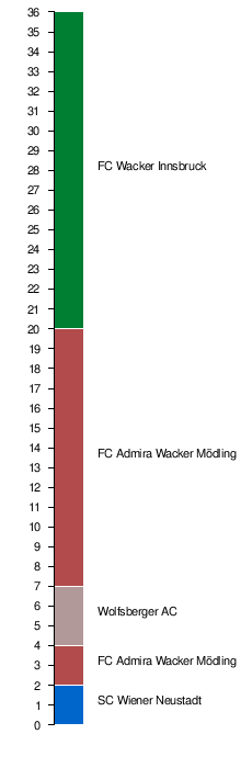 | 1:0 | 3:1 | 2:0 | 1:1 | 3:0 | 1:4 | 0:3 | 1:2 | 0:4 | FC Admira Wacker Mödling | 0:1 | 2:3 | 2:1 | 1:1 | 1:0 | 2:2 | 3:0 | 3:0 | 4:0 | ||