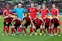 | UEFA Euro 2016 qualifying, Group G – Austria (red shirts) vs. Liechtenstein (blue shirts) 3–0 (1–0) on 2015-10-12 in Ernst-Happel-Stadion , Vienna – The photo shows the honoring of the entire team for the successful qualification for the European Championship. | Eigenes Werk | Steindy ( Diskussion ) 22:34, 14 October 2015 (UTC) | Datei:AUT vs. LIE 2015-10-12 (006).jpg | |