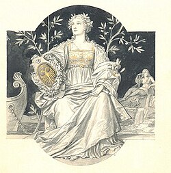 | Nationalallegorie Austria | Ursprung des Originals aus dem Bestand des Kunsthandels Haugwitz (dort mit weiterführenden Informationen zum Zuschreibungsversuch an Moritz von Schwind) Reproduktion: Dr. Hermann Büchner, Berlin | Werkstatt von Moritz von Schwind | Datei:Nationalallegorie Austria.jpg |