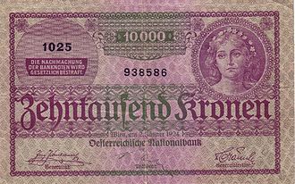 | Österreichische 10000 Kronen 1924 - Banknote - Vorderseite | http://www.banknote.ws/ | Unbekannt | Datei:10000Kronen1924vorne.jpg | |