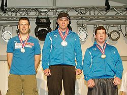 | Österreichische Meisterschaften im Grasskilauf 2010 in Rettenbach: Siegerehrung Kombination Herren: 1. Platz und Österreichischer Staatsmeister: Michael Stocker (Mitte), 2. Platz: Marcus Peschek (links), 3. Platz: Daniel Gschwandtner (rechts) | Eigenes Werk | Christian Jansky | Datei:Grasski-ÖM 2010 Kombination Herren.jpg | |