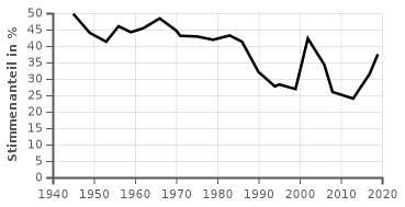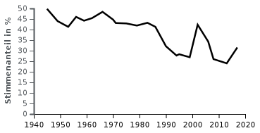 Daneben wird die Partei prinzipiell als wirtschaftsnah gesehen. Die ökonomische Figur des ehrbaren Kaufmanns wird aber nicht nur in der Wirtschaft, sondern „in allen gesellschaftlichen Bereichen“ zum Leitbild erhoben. Propagiert wird ein Mittelweg aus Konservatismus und wirtschaftsliberaler Orientierung, mit mehr Eigenvorsorge und weniger „staatlich verbürgter Solidarität“.[10] Die traditionelle Vertretung der ländlichen Bauernschaft – in Abgrenzung zur städtischen Arbeiterschaft durch die Linke – verlor im Laufe der Zeit an Bedeutung.