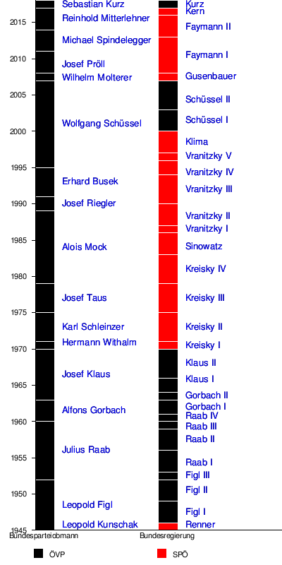 1986 gewann der ÖVP-Kandidat Kurt Waldheim die Wahlen zum Bundespräsidenten. Daraufhin trat Bundeskanzler Fred Sinowatz zurück, ihm folgte Finanzminister Franz Vranitzky nach. Dieser kündigte nach dem Obmannwechsel in der FPÖ zu Jörg Haider die Koalition auf. Bei den Neuwahlen am 23. November 1986 blieb die ÖVP knapp hinter der SPÖ.
