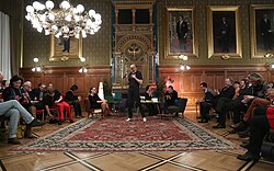 | Markus Schleinzer führt durch den „Abend der Nominierten“ im Stadtsenatssaal des Wiener Rathauses am Vorabend der Verleihung des Österreichischen Filmpreises 2014 . | Eigenes Werk | Manfred Werner - Tsui | Datei:Markus Schleinzer - Abend der Nominierten zum Österreichischen Filmpreis 2014 a.jpg | |