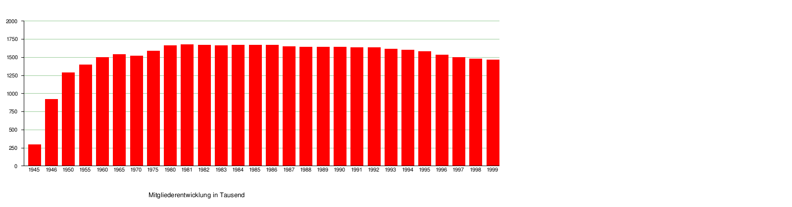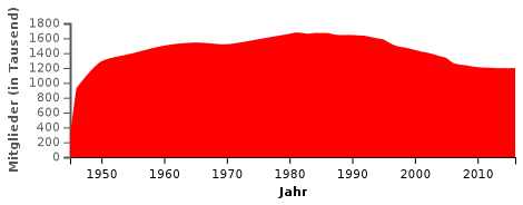 Die Anzahl der Mitglieder seit 1945 setzt sich wie folgt zusammen.[2]