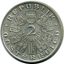 - ↑ Florian Schön: Münzkatalog Österreichischer Schilling, 2015.