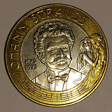 Bei der 50-Schilling-Münze aus dem Prägejahr 1999 Johann Strauß fehlt die Angabe des Prägejahrs.[37]