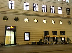 Museumsgebäude von aussen, mit Cafeteria unten rechts und 1. Stock Büros des Museums | Eigenes Werk | Burkhard Mücke | Datei:Österreichisches Filmmuseum 2.jpg | |