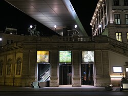 Eingangsbereich des Filmmuseums im Gebäude der Altbertina mit Bulleraugenfenstern oben und Schaukasten unten rechts | Eigenes Werk | Burkhard Mücke | Datei:Österreichisches Filmmuseum 10.jpg | |