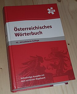 Das Österreichische Wörterbuch repräsentiert als Wörterbuch (Rechtschreibwörterbuch) das für Österreich gültige amtliche Regelwerk der deutschen Sprache.[1] Es wird im Auftrag des Bundesministeriums für Bildung vom Österreichischen Bundesverlag (ÖBV) in Wien herausgegeben.