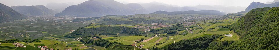 | Panoramablick von Schloss Boymont - links Bozen, rechts das Überetschgebiet um Eppan | Eigenes Werk | Hubert Berberich ( HubiB ) | Datei:PanoBoymontEppan.jpg | |