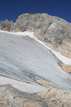 - ↑ Roman Moser: Der Hallstätter Gletscher – heute der größte Gletscher der Nördlichen Kalkalpen. In: Institut für Landeskunde am o. ö. Landesmuseum in Linz (Hrsg.): Oberösterreichische Heimatblätter. Heft 1–2, 1954, S. 103 (zobodat.at [PDF; abgerufen am 12. März 2022]).