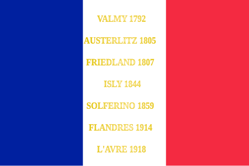 - ↑ Décision n° 12350/SGA/DPMA/SHD/DAT du 14 septembre 2007 relative aux inscriptions de noms de batailles sur les drapeaux et étendards des corps de troupe de l’armée de terre, du service de santé des armées et du service des essences des armées. In: Bulletin officiel des armées. Nr. 27, 9. November 2007 (Bestimmung Nr. 12350/SGA/DPMA/SHD/DAT vom 14. September 2007 über das Aussehen der Inschriften auf den Fahnen und Standarten der Truppenkörper des Heeres, des Sanitätsdienstes und der Treibstoffversorgungsbranche. Veröffentlicht im offiziellen Armeebulletin Nr. 27 vom 9. November 2007