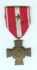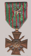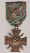 | Cross of the French military value bronze star with (a summons to the order of the brigade, regiment or unit equivalent). | Objet personnel 1962 User:Poussin jean | numérisation User:Poussin jean | Datei:Croix-valeur-militaire.jpg | |