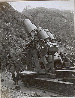 | Dieser Skoda 305-mm-Haubitze zerstörte im Juni 1915 Ft. Verena und Campolongo. | State Archives/War Archives Vienna (Austria) | anonymous photographer during World War I | Datei:Austro- hungarian 305 mm Howitzer.jpg | |