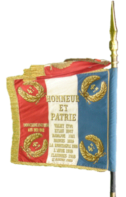 - ↑ Bestimmung Nr. 12350/SGA/DPMA/SHD/DAT vom 14. September 2007 regelt die Inschriften auf den Standarten der Truppenkörper des Heeres, des Sanitätsdienstes und des Kraftstoffversorgungsdienstes (Service des essences des armées) neu. Grundlage ist das « Bulletin officiel des armées », numéro 27 , 9 novembre 2007
