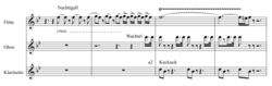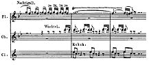 - Anklänge an Vogelgezwitscher (z. B. in T. 46–53 in den Flöten)