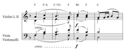 - Bordune (z. B. in T. 1–3 sowie T. 16–25 in den Bratschen und Violoncelli oder in T. 29ff in den Celli und Hörnern)