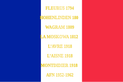 - ↑ Bestimmung Nr. 12350/SGA/DPMA/SHD/DAT vom 14. September 2007 regelt die Inschriften auf den Standarten der Truppenkörper des Heeres, des Sanitätsdienstes und des Kraftstoffversorgungsdienstes (Service des essences des armées) neu. Grundlage ist das Bulletin officiel des armées, Nummer 27, 9. November 2007.