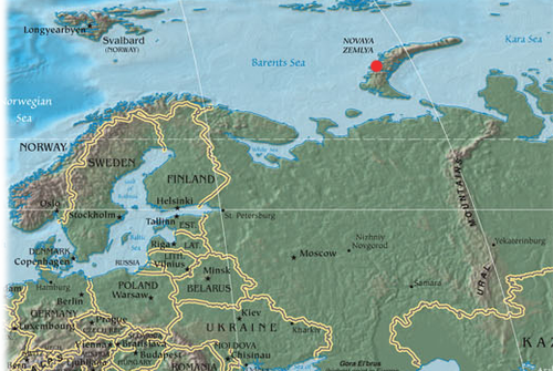 | Testort | Doppelinsel Nowaja Semlja 73,6624° N, 54,7078° E |