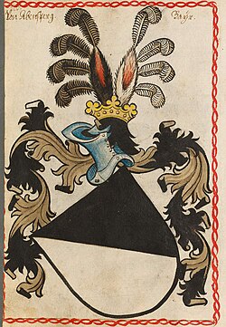 | Scheibler'sches Wappenbuch , älterer Teil; Seite 18 Von Abensperg Bayr | Bayerische Staatsbibliothek Cod.icon. 312 c 1450 - 1480 | verschiedene unbekannte Künstler | Datei:Abensberg-Scheibler18ps.jpg | |