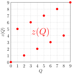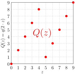 Funktionsgraph (im kartesischen Koordinatensystem ) für Q ( z ) := q ( 2 ⋅ z ) \displaystyle Q(z):=q(2\cdot z) für z \displaystyle z im Intervall 0..9; wobei q ( n ) \displaystyle q(n) die Quersumme der Zahl n ∈ N 0 \displaystyle n\in \mathbb N _0 bedeutet | Eigenes Werk | SweetWood | Datei:Funktionsgraph Q(z) (0-9).svg | |