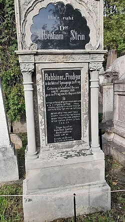 | Abraham Stein's gravestone in the jewish cemetary in Žižkov, Prague | Eigenes Werk | בן עדריאל | Datei:Abraham Stein's gravestone.jpg |