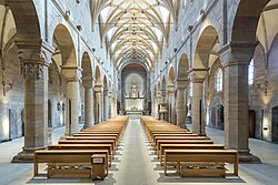 1964, im Jahr des 800-jährigen Weihejubiläums, begann Clemens Holzmeister die Umbauarbeiten in der Basilika. Die Kirchenvorhalle wurde weitgehend ausgeräumt, der Hochaltarbereich im Sinne des 2. Vatikanums neu gestaltet. Ein Volksaltar und ein Ambo entstanden, die romanische Kreuzigungsgruppe wurde über den Altar gehängt und ein Steinfenster in die Mittelapsis eingebaut. (Am 5. September 1964 erfolgte die Weihe.)[19]