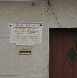 | memorial plate on Adam Müller-Guttenbrunn's birthplace in Zăbrani (Guttenbrunn), Arad County (Banat), Romania | Eigenes Werk | Oguszt | Datei:Guttenbrunn mullers geburtshaus.jpg | |