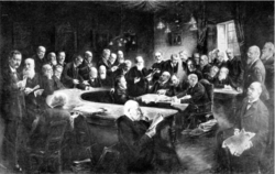| Das Professorenkollegium der medizinischen Universität Wien, Kreidezeichnung von Olga Prager, Wien 1908–1910. Im Dekanatszimmer der medizinischen Fakultät der Universität Wien. Edmund v. Neusser, Sigmund Exner, Isidor Schnabel, Ferdinand Hochstetter, Alphons v. Rosthorn, Anton Weichselbaum, Leopold Schrötter R. v. Kristelli, Heinrich Obersteiner, Julius Wagner R. v. Jauregg, Victor Ebner v. Rofenstein, Karl Toldt, Gustav Riehl, Ottokar v. Chiari, Anton R. v. Frisch, Ernst Fuchs, Anton Freih. v. Eiselberg, Hans Horst Meyer, Ernst Ludwig, Rudolf Chrobak, Theodor Escherich, Alexander Kolisko, Julius v. Hochenegg, Arthur Schattenfroh, Karl v. Noorden, Emil Zuckerkandl, Richard Paltauf, Gustav Gärtner, Leopold Oser, Josef Moeller, Alois Monti, Julius Mauthner, Victor v. Urbantschitsch, August R. v. Reuss, Adolf v. Strümpell, Ernst Finger, Adolf Lorenz, Friedrich Schauta (Medizinische Universität Wien/Department) | https://www.researchgate.net/figure/Abbildung-14-Das-Professorenkollegium-der-medizinischen-Universitaet-Wien_fig7_307720168 | Olga Prager | Datei:Professorenkollegium Wien, 1908–1910.png | |