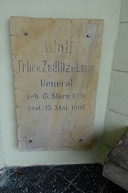 | Patrz tytuł | Eigenes Werk | Robert Niedźwiedzki | Datei:Płyta epitafijna Adolfa von Zedlitz und Leipe. Kaplica św. Floriana, kościół pw. Męki Pańskiej w Tyńcu Legnickim.jpg |