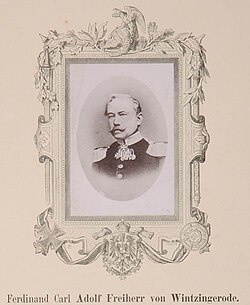 | Ferdinand Karl Adolph Freiherr von Wintzingerode (* 16. Februar 1801 in Hanau; † 18. März 1874 in Bonn) war ein preußischer Generalleutnant. | http://www.museen-nord.de/Objekt/DE-MUS-076111/lido/P4-W-30 | Verlag der "Militaria" Verlagshandlg., Berlin. | Datei:Adolph-Ferdinand-Karl-von-Wintzingerode.jpg |