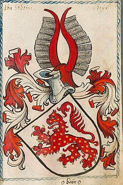 | Scheibler'sches Wappenbuch , älterer Teil; Seite 323 Von Ahaim Bayr | Bayerische Staatsbibliothek Cod.icon. 312 c 1450 - 1480 | verschiedene unbekannte Künstler | Datei:Aham-Scheibler323ps.jpg | |