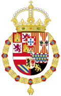 | Coat of Arms of King of Spain, 1580-1668 (Philip II, Philip III, Philip IV and Charles II) | Heráldica Hispánica Crown design based on the Coat of Arms of El Escorial 1 | Heralder | Datei:Royal Coat of Arms of Spain (1580-1668).svg | |