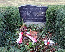- ↑ Prochy wybitnego uczonego prof. Aleksandra Brücknera spoczną na cmentarzu Rakowickim gazetakrakowska.pl, 13. September 2023.