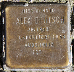 | Stolperstein, Alex Deutsch , Blücherstraße 61b, Berlin-Kreuzberg , Deutschland | Selbst fotografiert | OTFW , Berlin | Datei:Stolperstein Blücherstr 61b (Kreuzb) Alex Deutsch.jpg |