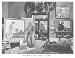 | Painter Alexander Demetrius Goltz (1857-1944) in his studio | Sport und Salon, 28 February 1903 , digitized by Austrian National Library | Josef Vinzens Jahudka | Datei:Alexander Demetrius Goltz 1903 Jahudka.jpg | |
