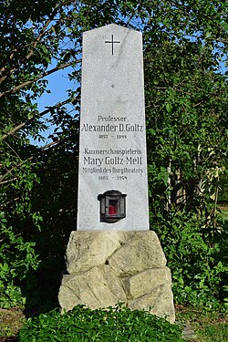 | Ehrenhalber gewidmetes Grab von Alexander Demetrius Goltz auf dem Wiener Zentralfriedhof . Dieses Bild zeigt das in Österreich unter der Nummer 128657 denkmalgeschützte Objekt. ( Commons , de , Wikidata ) | Eigenes Werk | Haeferl | Datei:Wiener Zentralfriedhof - Gruppe 23 A - Alexander Demetrius Goltz.jpg |