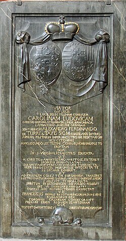 | Epitaph Alexander Ferdinand von Thurn und Taxis (1704–1773), im Kaiserdom St. Bartholomäus Frankfurt a.M | Eigenes Werk | Hajotthu | Datei:Epitaph Alexander Ferdinand von Thurn und Taxis@Kaiserdom St. Bartholomäus Frankfurt a.M.20170819.jpg | |