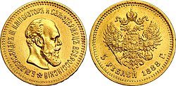 | 5 Roubles à l'effigie du Tsar d'Alexandre III, 1888 | http://www.cgb.fr/russie-5-roubles-tsar-alexandre-iii-aigle-imperial-1888-st-petersbourg,fwo_304447,a.html | cgb | Datei:5 Roubles à l'effigie du Tsar d'Alexandre III, 1888.jpg | |