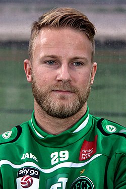 | Match of the Erste Liga – SC Wiener Neustadt (blue/white shirts) vs. FC Wacker Innsbruck (green/black shirts) 1–2 (0–1) on 2015-09-15 in the Stadion in Wiener Neustadt – The photo showsAlexander Riemann (FC Wacker Innsbruck). | Eigenes Werk | Steindy ( Diskussion ) 13:03, 20 October 2015 (UTC) Permission= Kameraposition 47° 49′ 21,54″ N, 16° 15′ 19,79″ O Dieses und weitere Bilder auf OpenStreetMap 47.822650; 16.255496 Die Herstellung oder Freigabe dieser Datei wurde durch Spenden an Wikimedia Österreich unterstützt. Weitere Dateien, die durch Unterstützung von Wikimedia Österreich hier veröffentlicht wurden, finden sich in der Kategorie Supported by Wikimedia Österreich . | Datei:SC Wiener Neustadt vs. FC Wacker Innsbruck 2015-09-15 (123).jpg |